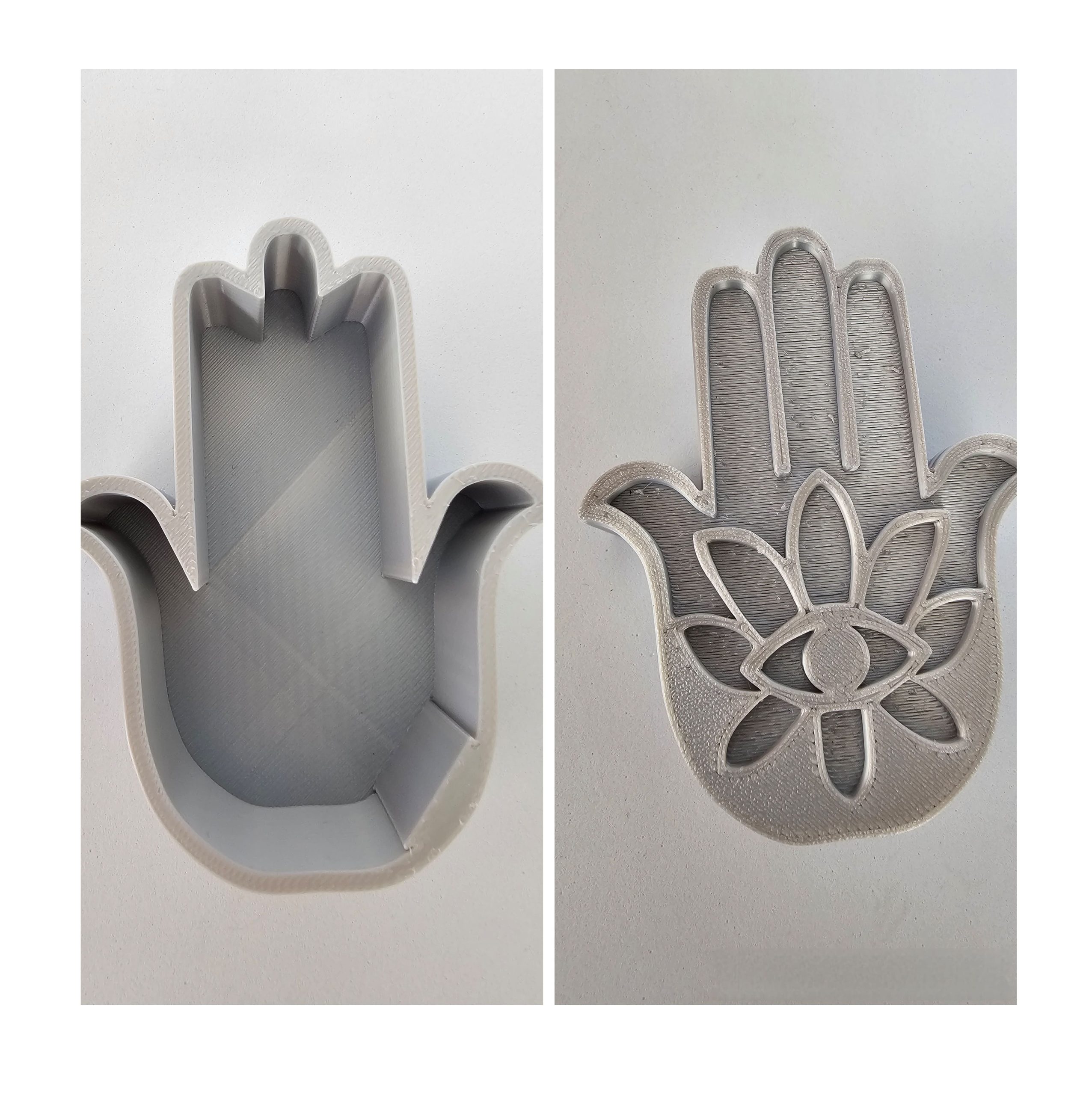 Descubre la combinación perfecta entre tradición y tecnología con esta cajita joyero sin tapa en forma de Mano de Fátima plateada impresa en 3D. También conocida como Hamsa, esta figura es un poderoso amuleto protector utilizado desde la antigüedad para atraer la buena suerte y alejar las energías negativas.